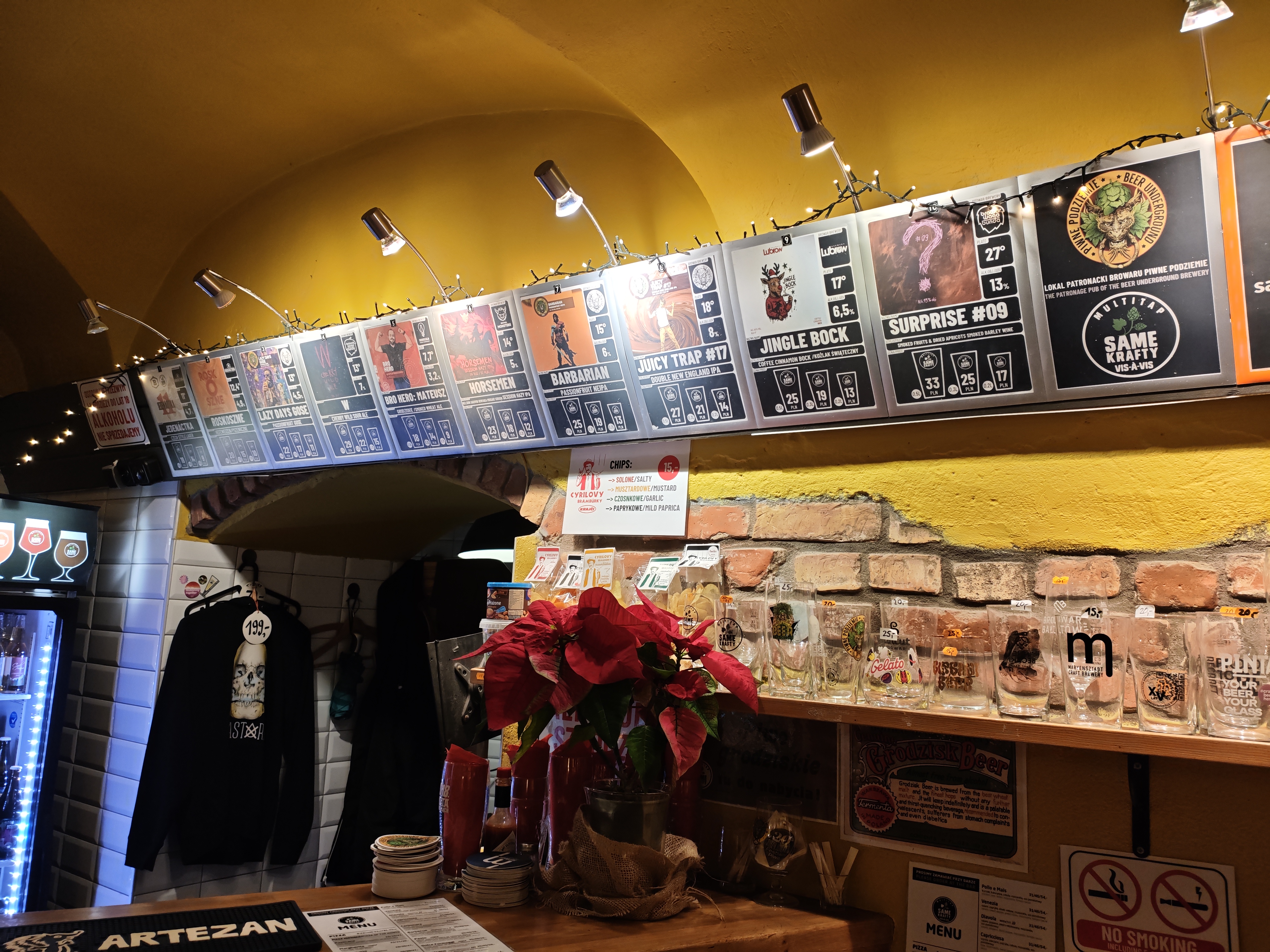 A cosy, cave-like craft beer bar in the near center of old town Warsaw. The seating isn't much to write home about, but it fits the purpose.